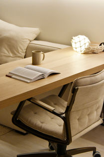 O espirito do desenvolvimento deste apartamento foi a combinação de curvas com detalhes de marcenaria em menor escala. Painéis de correr de vidro e palha fazem a divisão dos ambientes, para integrar ou segregar.